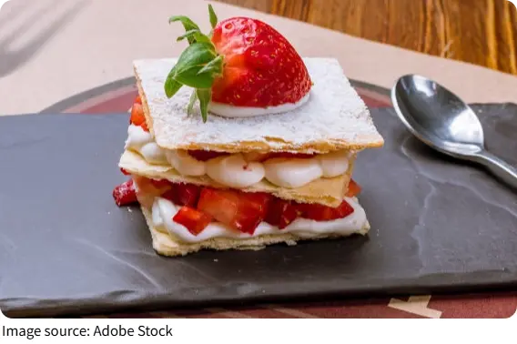 Strawberry mille-feuille is a French-inspired dessert that looks fancy but is surprisingly doable at home. It’s made with delicate, thin pastry layers, fluffy whipped cream, and fresh, juicy strawberries.
